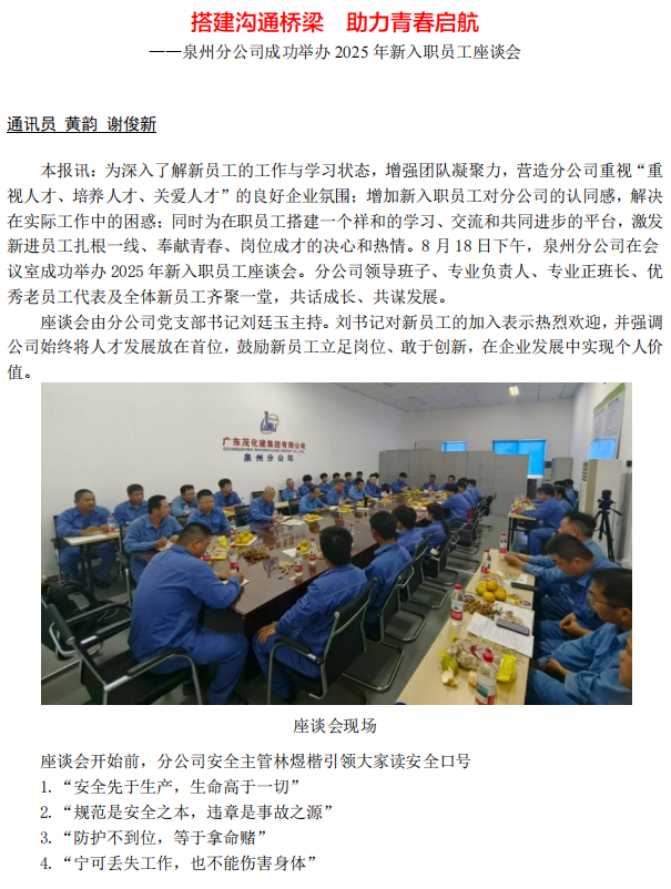 泉州分公司成功舉辦 2025 年新入職員工座談會